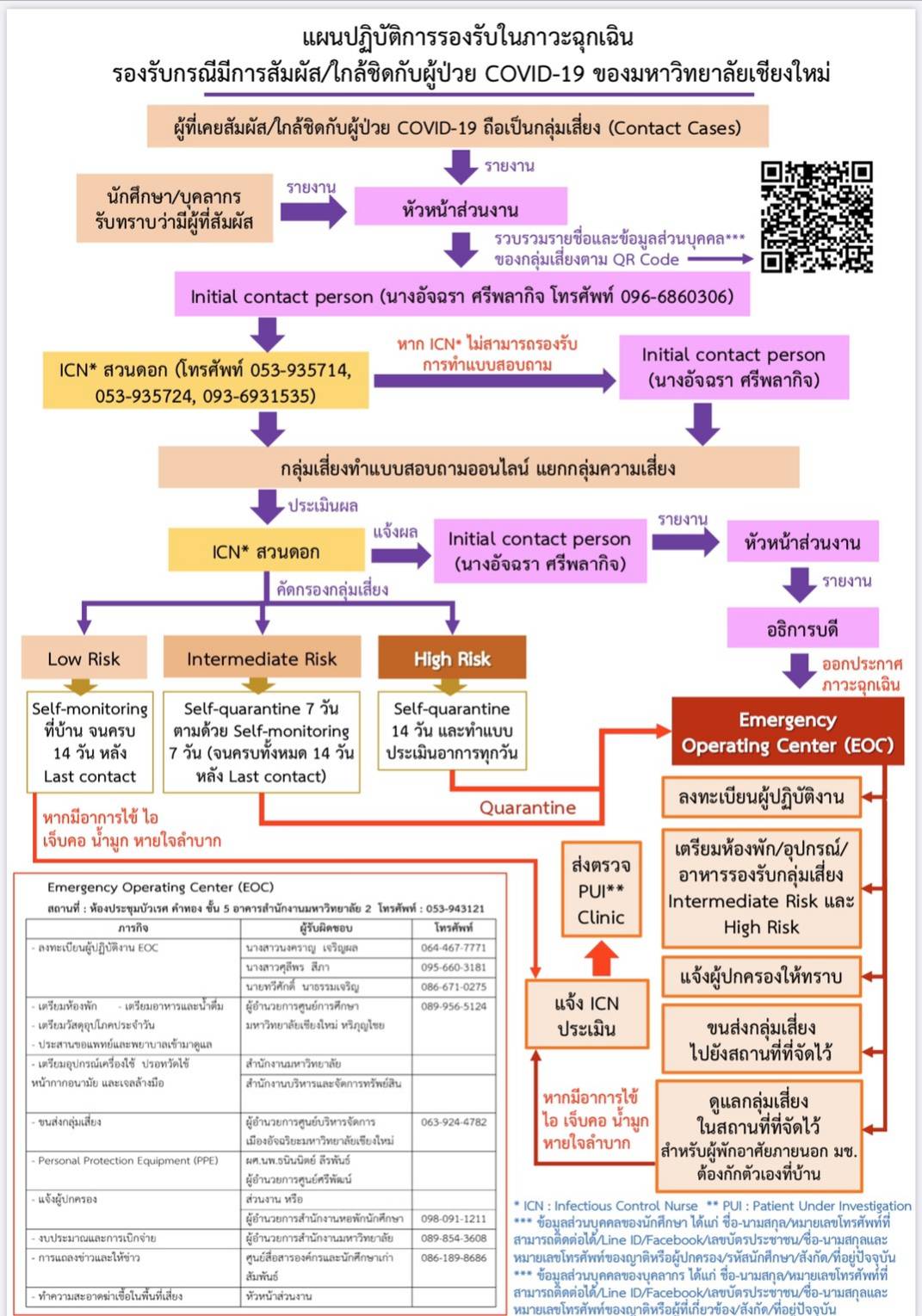 แผนปฏิบัติการรองรับในภาวะฉุกเฉิน กรณ๊มีการสัมผัส/ใกล้ชิดผู้ป่วย COVID-19 ของมหาวิทยาลัยเชียงใหม่ |