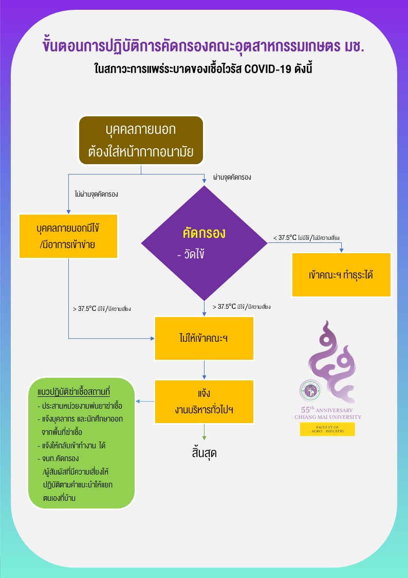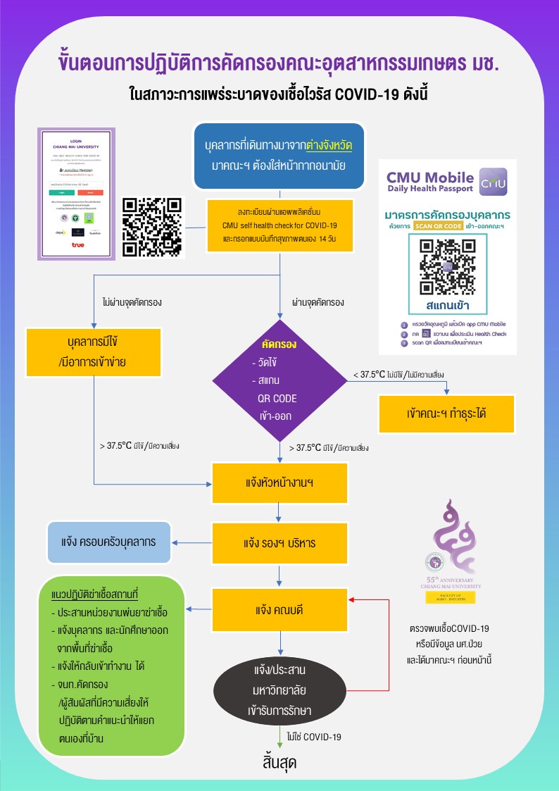 ขั้นตอนการปฏิบัติการคัดกรองคณะอุตสาหกรรมเกษตร มช. ในสภาวะการแพร่ระบาดของเชื้อไวรัส COVID-19 |